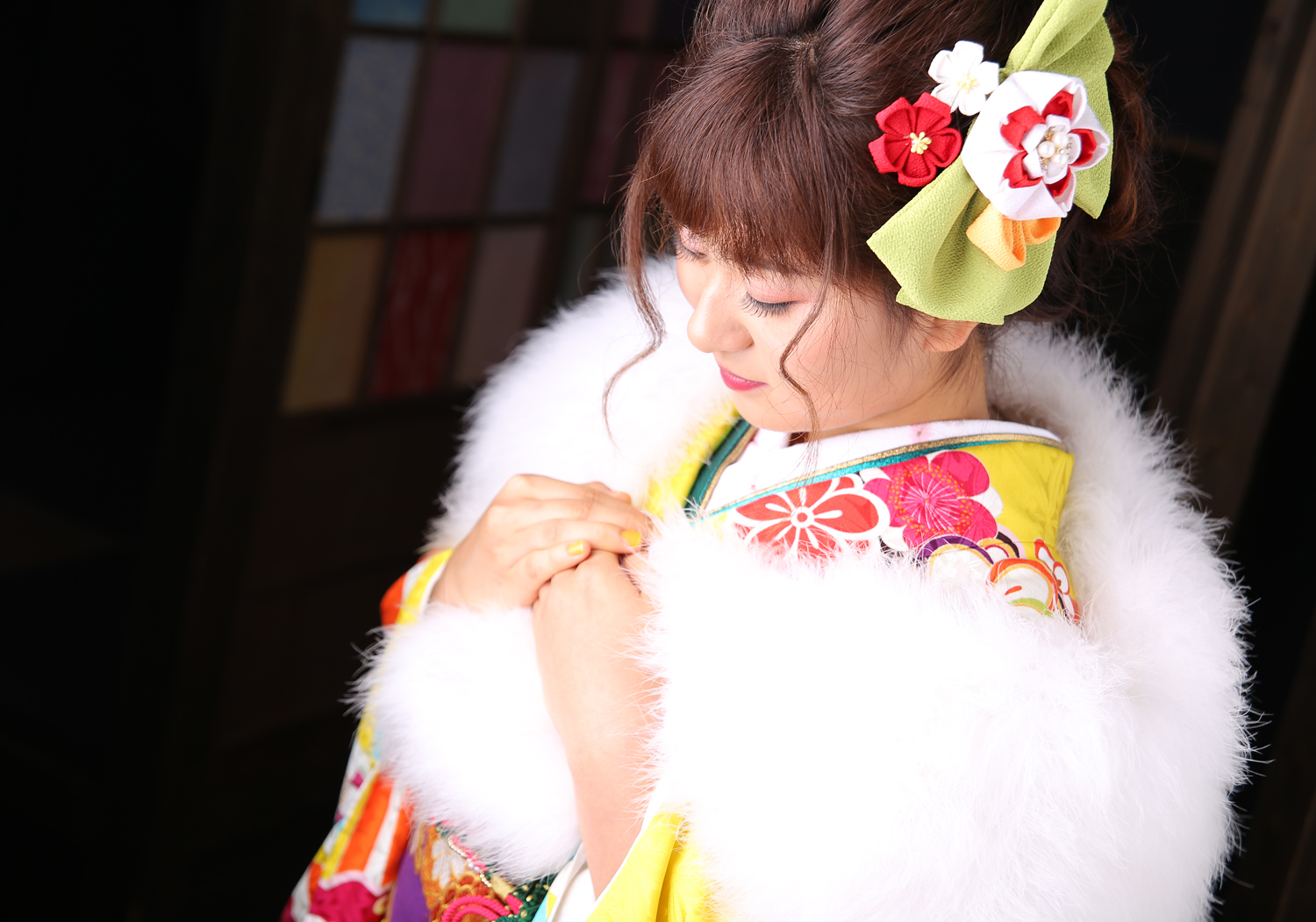 成人式ではつけていない人はほぼいない定番のショール(人物が引き立つ感じが良いですね♡)