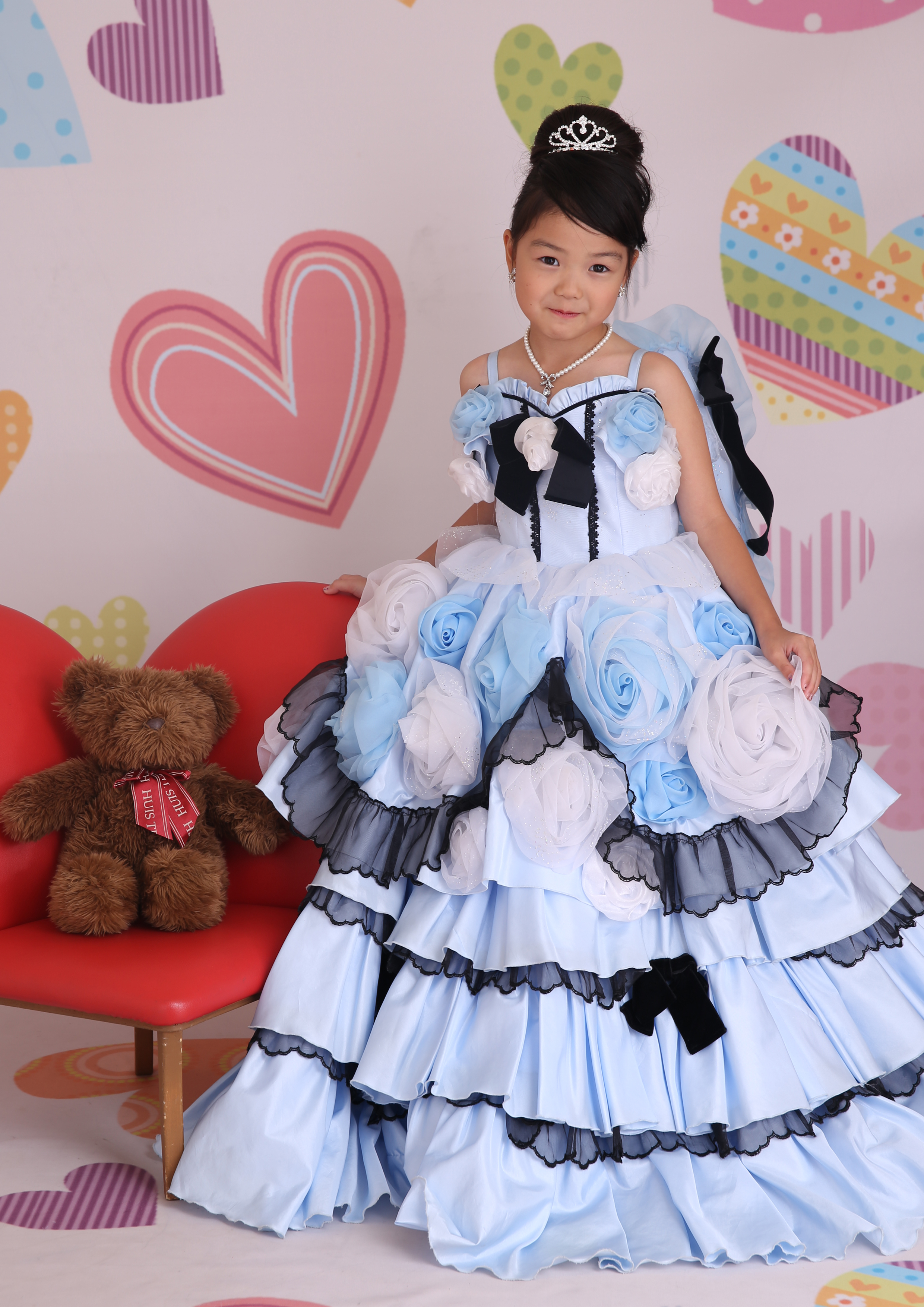 ふわふわなドレスなのでかわいらしさと,甘すぎない色味なので7歳さんにピッタリですね![]()