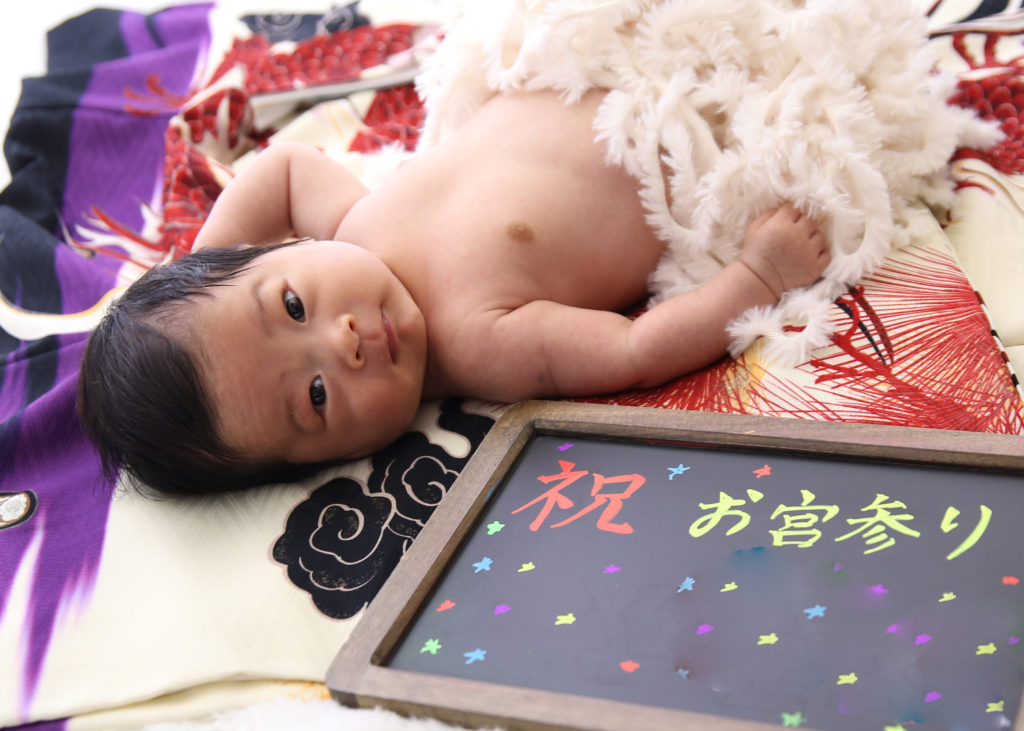 お宮参りのお祝い着✨泣かずに頑張りました♪