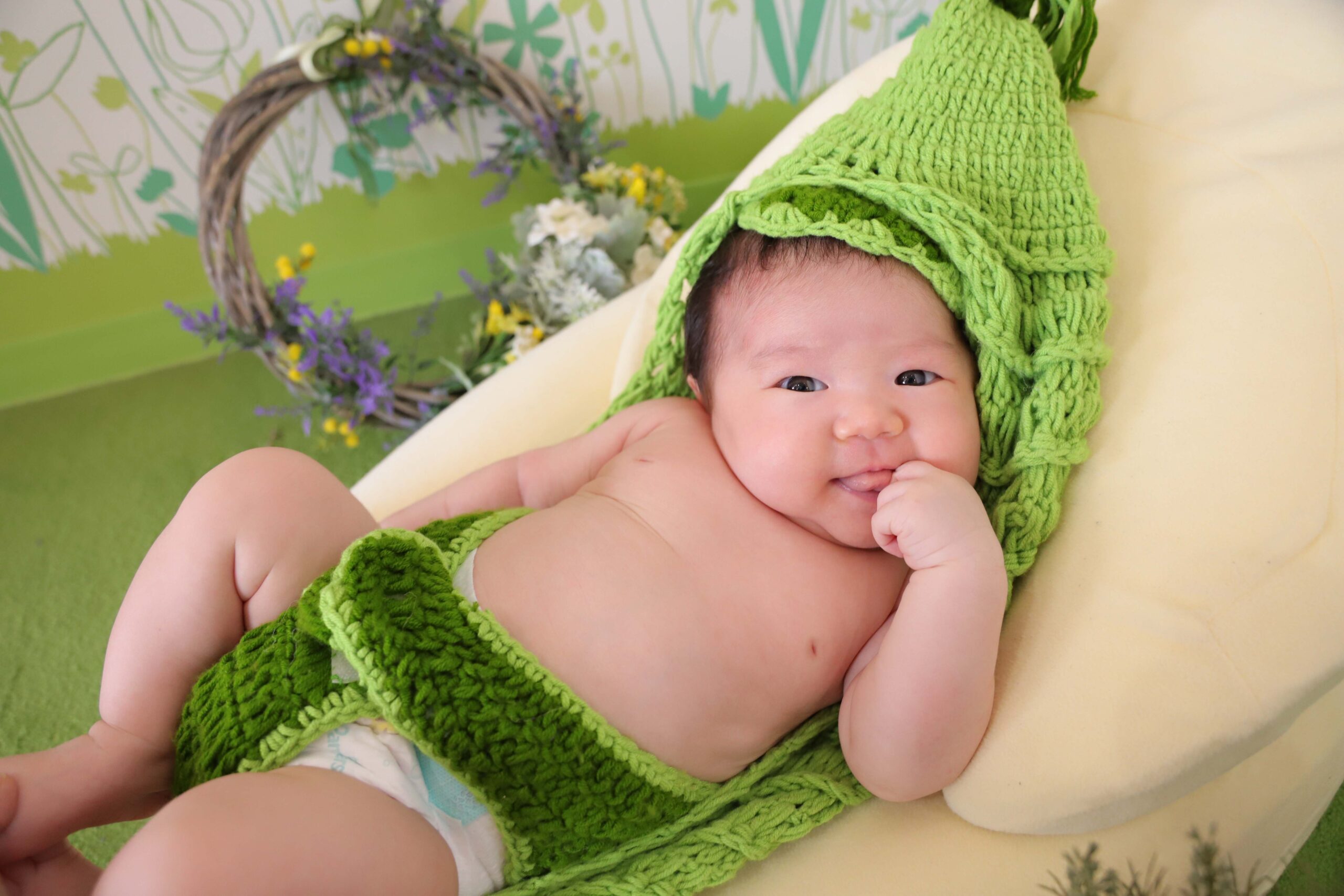 はじめはそら豆のニットを着てのお写真です!!💚