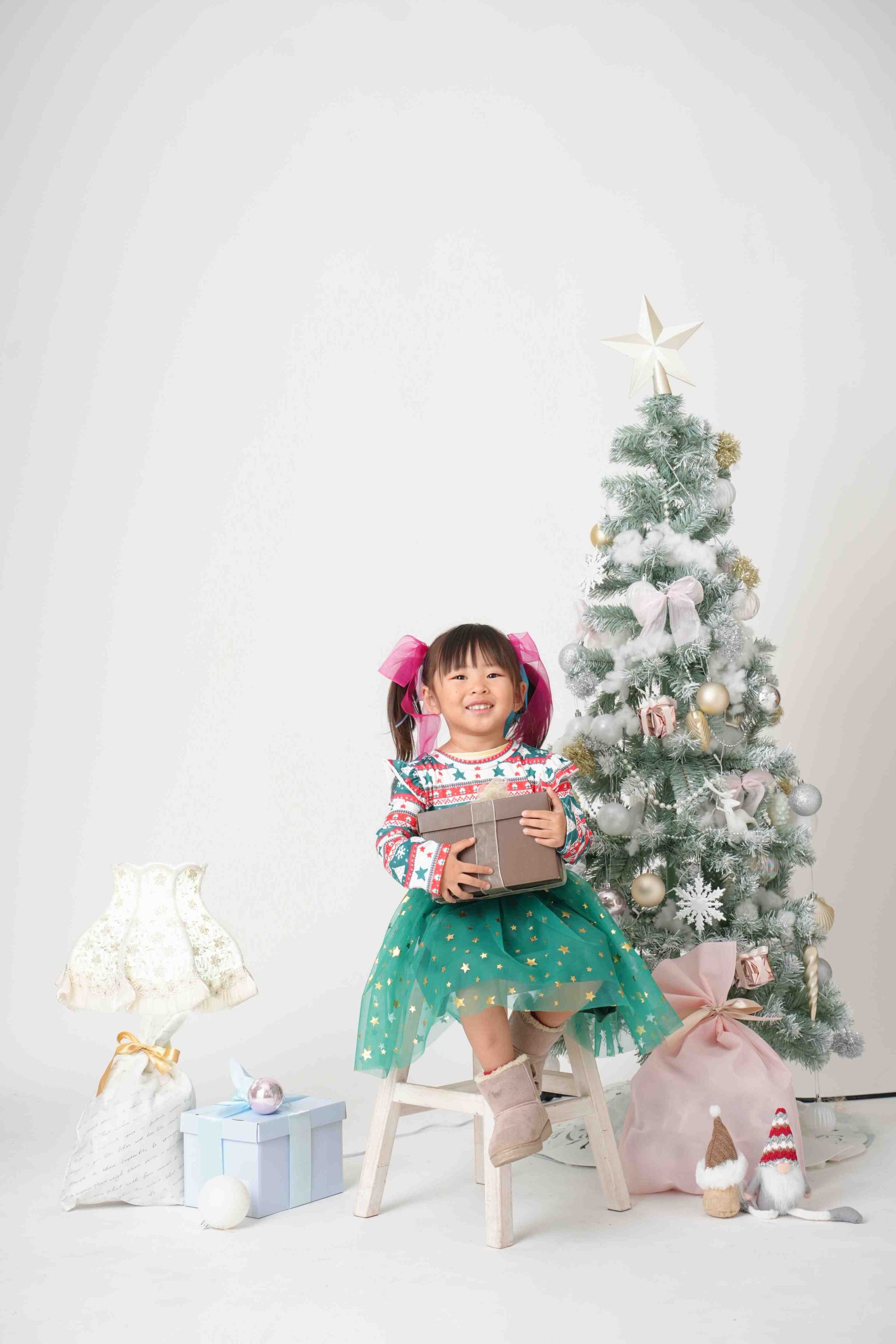 妹ちゃんは椅子に座ってプレゼント持ってルンルン可愛いお写真が撮れました🥰