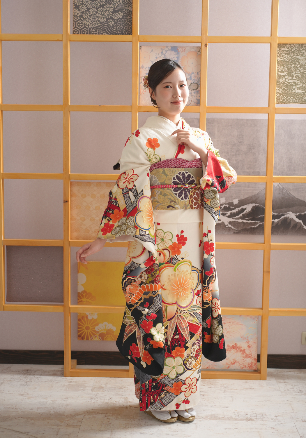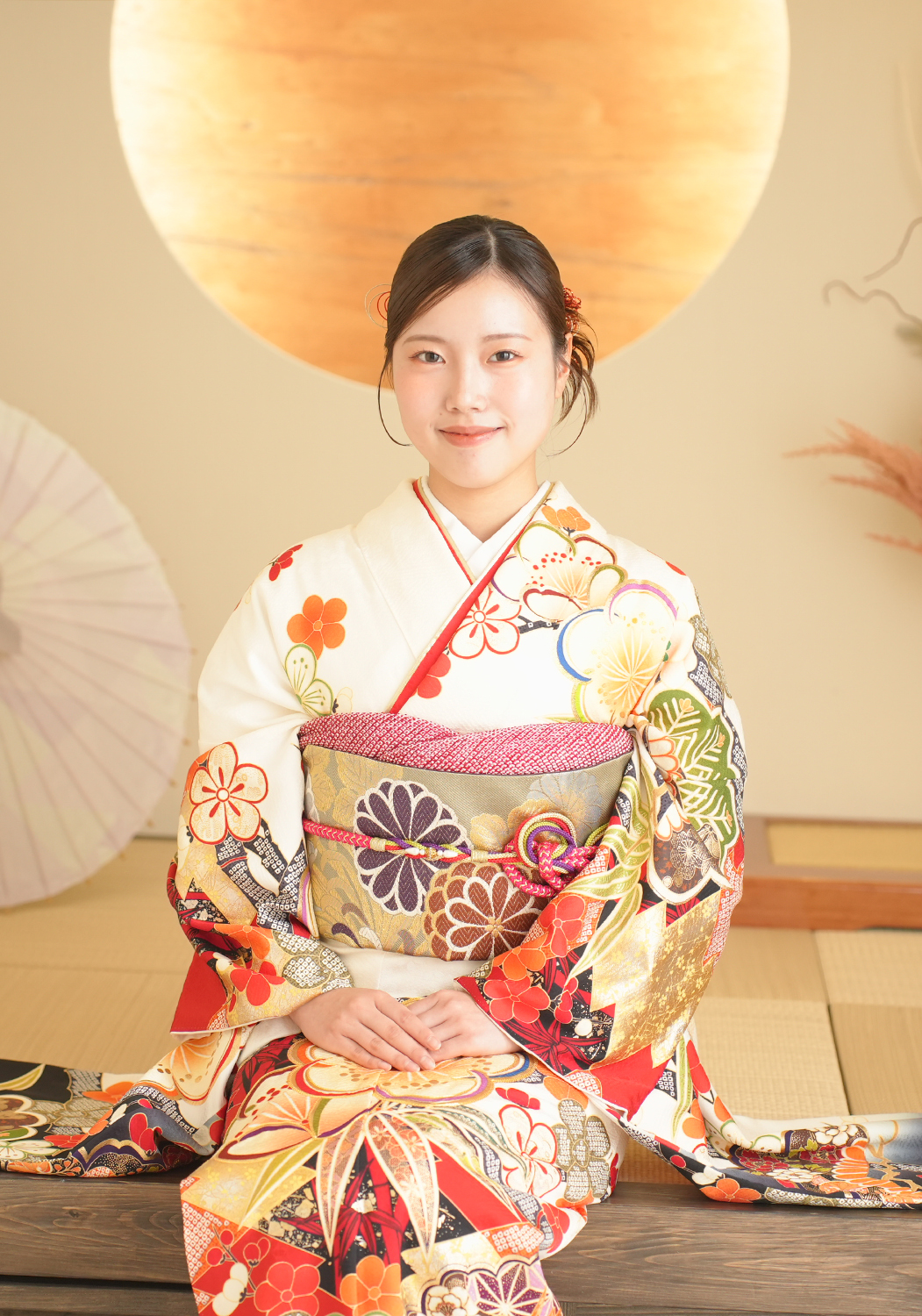 和室の背景と振袖が合っていて和を感じられますね🍂